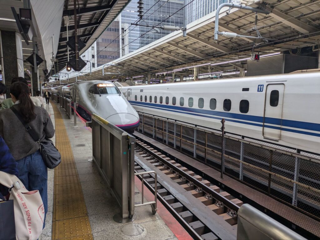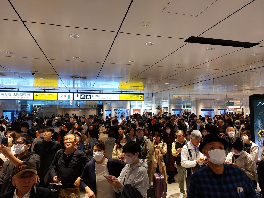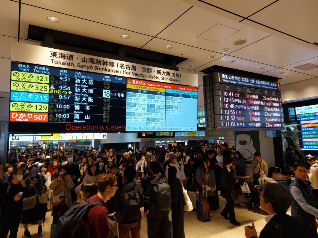 Am Hauptbahnhof Tokyo ist die Hölle los. An so viele Menschen hier kann sich Doreen nicht erinnern. So langsam leuchtet es ein, warum wir schon am Donnerstag keine 4 Sitzplätze mehr in einem Zug bekommen hatten. Die Japaner haben ein langes Wochenende. Da der Feiertag auf ein Sonntag fällt, ist einfach der Montag noch frei. Ob sowas wohl in Deutschland auch gehen würde? Wir schieben uns durch die Massen und fanden eine freie Ecke zum Rucksack abstellen. Anschließend erkunden wir einen kleinen Teil der Bahnhofsmall und stellen dabei fest, dass der Shinkansenbetrieb nach Südwesten aufgrund von Starkregen eingestellt ist. Gut, dass wir nach Nordosten fahren. Hoffentlich haben wir weiterhin so Glück mit der Taifunzeit.