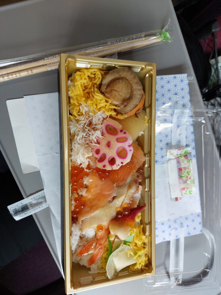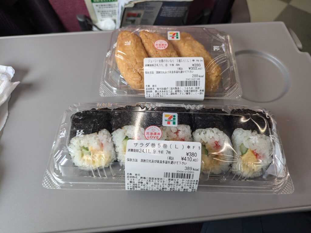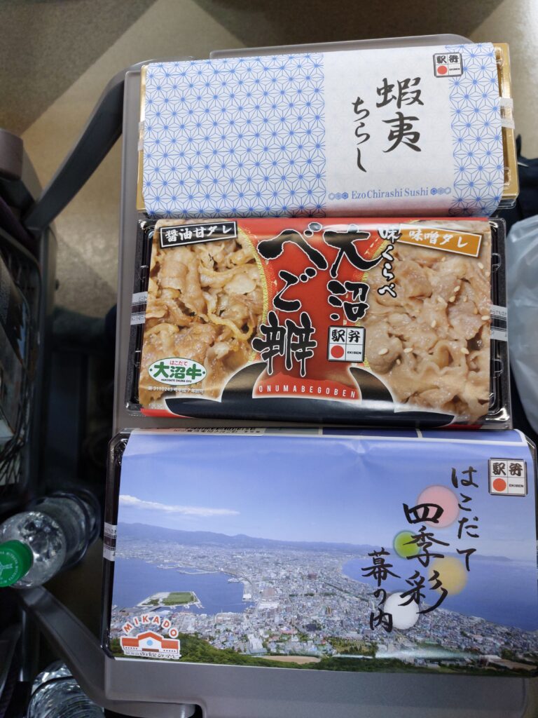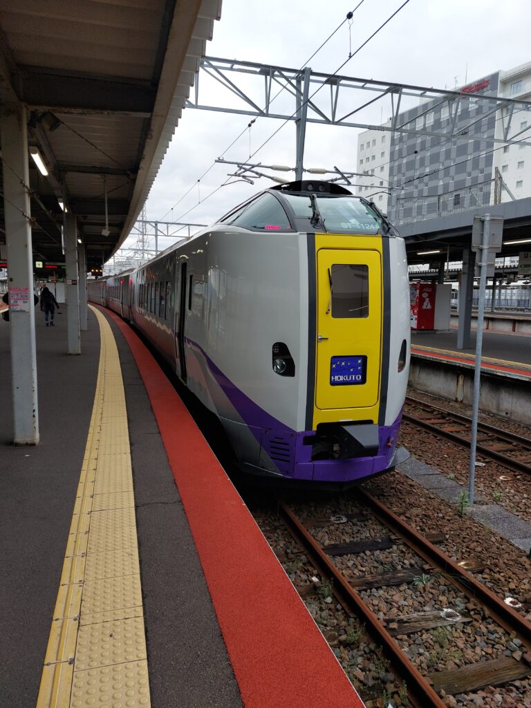 Heute starten wir etwas anders in den Tag. Nach dem Wecker klingeln hieß es packen und zum Bahnhof. Vor uns liegt eine knapp 4-stündige Zugfahrt mit dem Hokuto Limited Express nach Sapporo. Wir sind erstaunt, dass man für die Strecke so lange braucht, obwohl sie doch gar nicht so weit weg erscheint. Aber da zeigt sich nochmal deutlicher, welche Vorteile der Shinkansen als Reisemittel bietet. Dieser ist hier allerdings nicht weiter ausgebaut. Wir besorgen uns am Bahnhof noch Bentoboxen und Proviant für die Fahrt und dann ging es um 08.48 Uhr auch schon los.