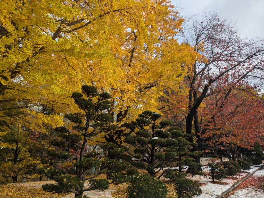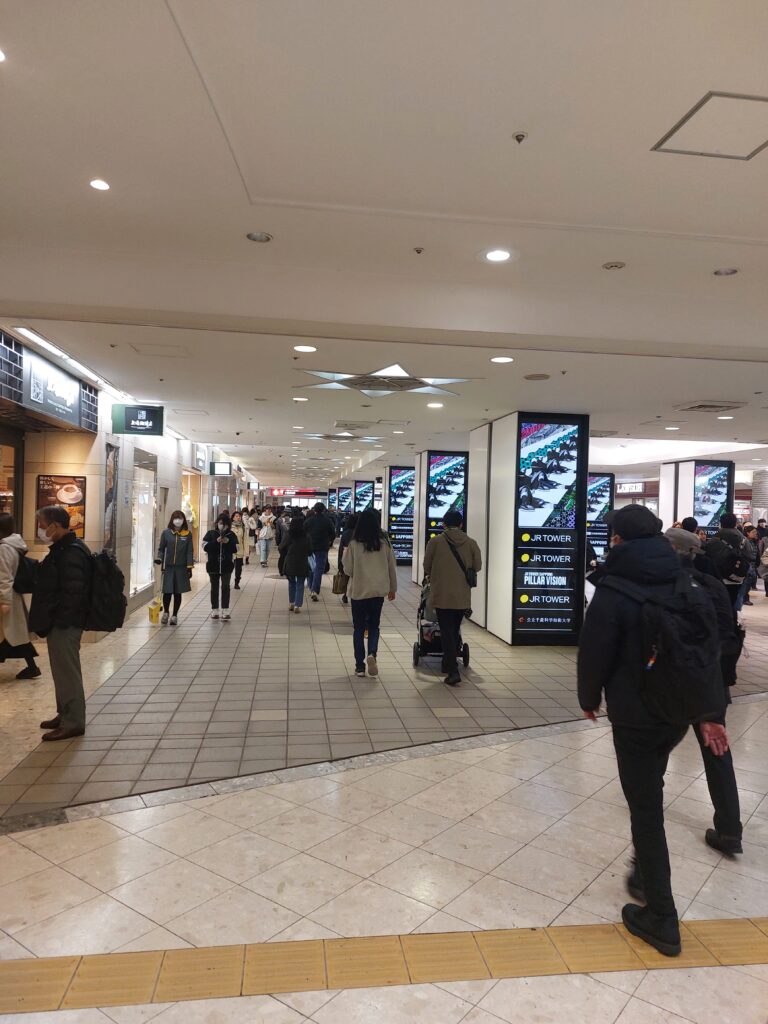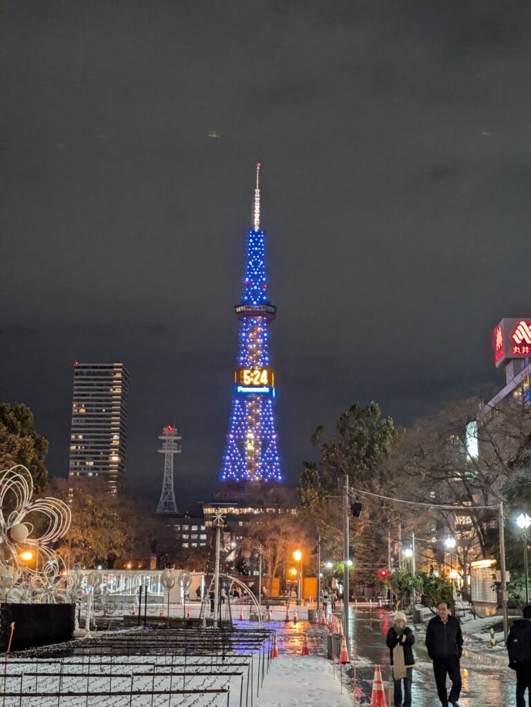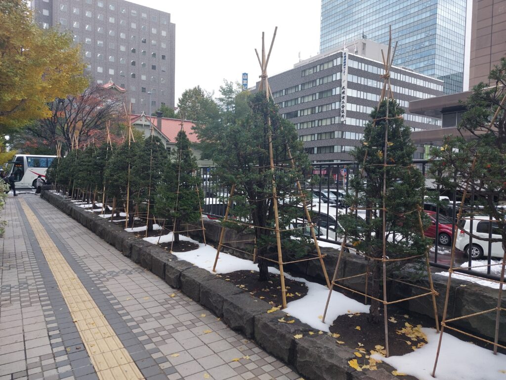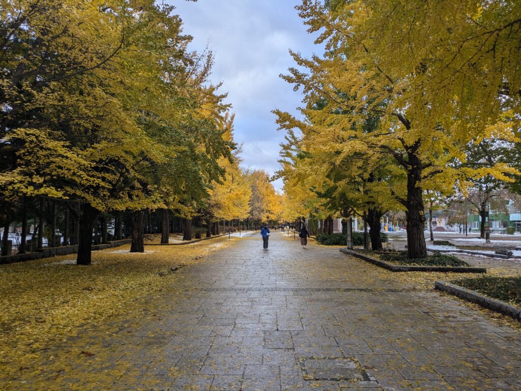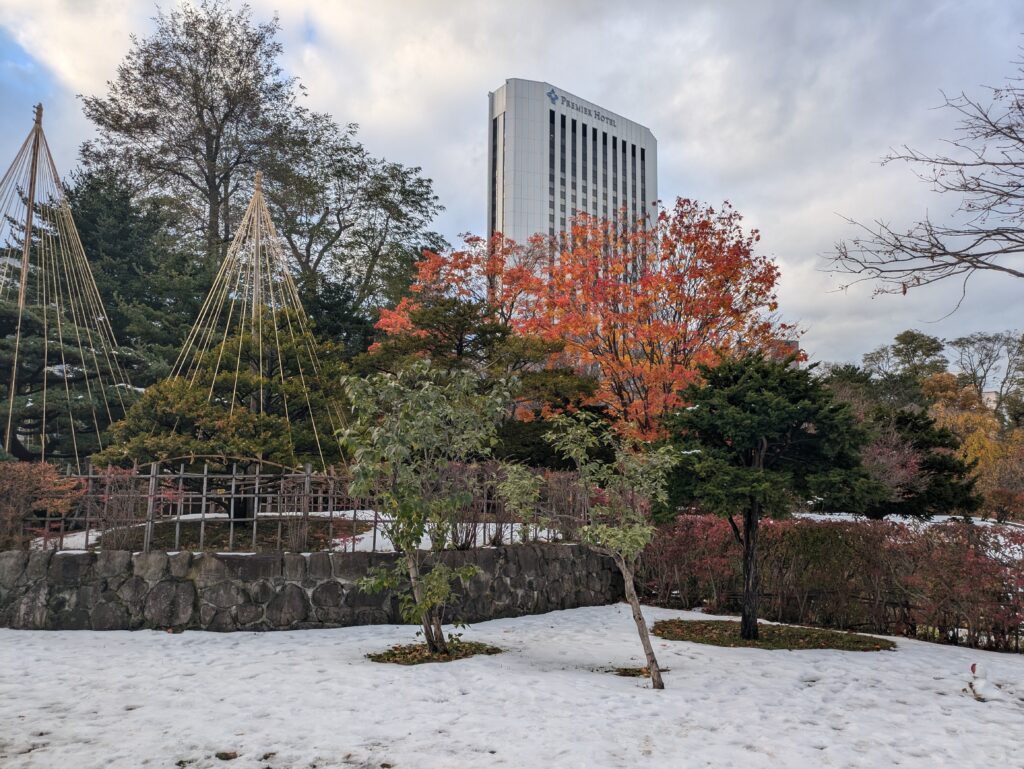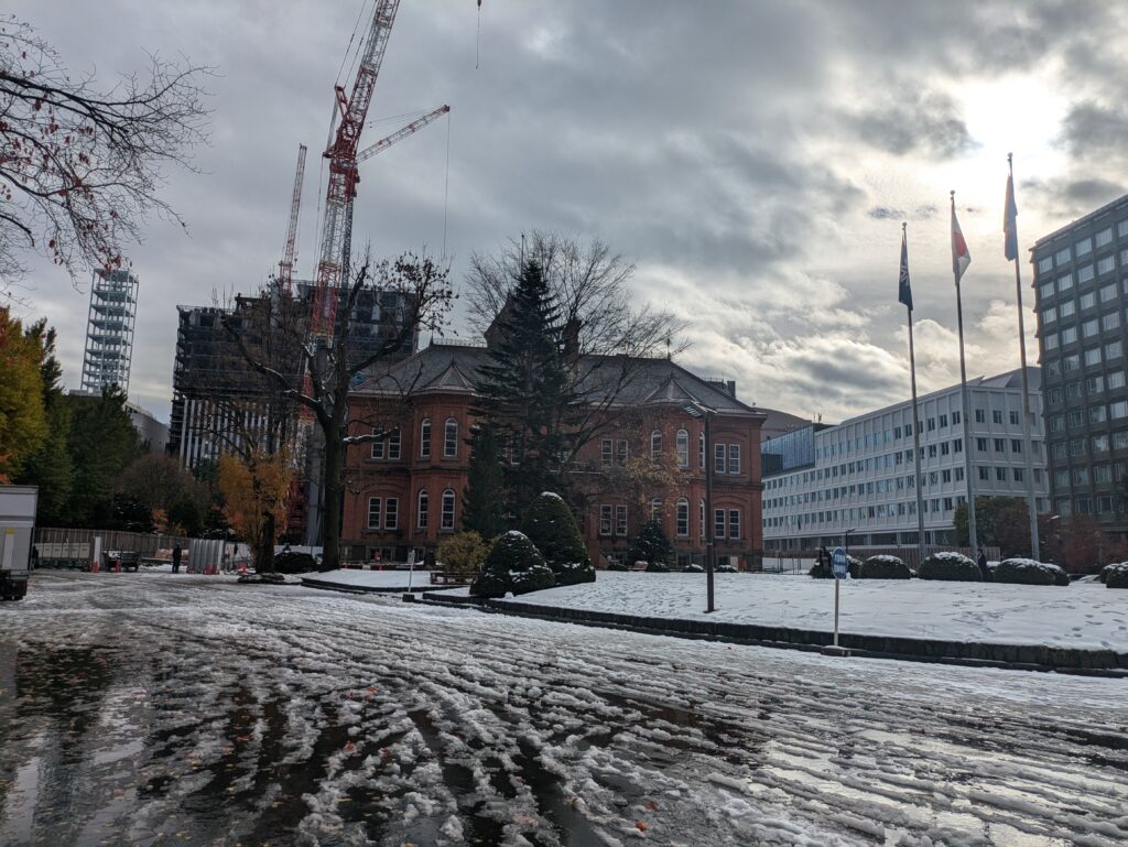 Wir machen uns auf und erkunden die Stadt. Der Wind ist nicht da, so fühlte es sich auch nicht so kalt an, sodass wir uns erstmal für den oberirdischen Teil der Stadt entscheiden. Für den Winter wird hier so viel Kälte und Schnee erwartet, dass sich die Menschen gerne auch unterirdisch fortbewegen. Man bedenke, dass Sapporo auf dem gleichen Breitengrad liegt wie Marseille.