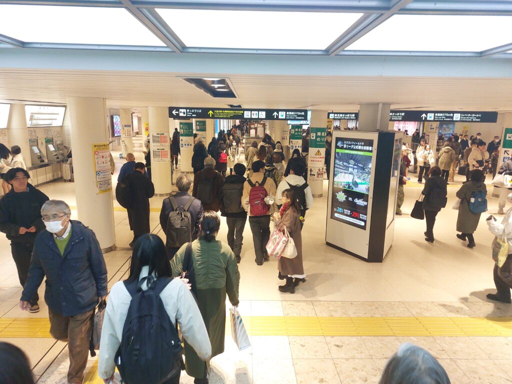 Mit unseren reservierten Sitzplätze war es wieder sehr entspannt. Auch in diesen überregionalen Zügen sind alle Sitze in Fahrtrichtung ausgerichtet. Die Stecke führte schön entlang des Meers. Wir genossen unser Frühstück und machten es dann wie die Japaner und schliefen ruck Zug ein. Bei dem Schaukeln des Zuges war das auch kein Problem. Kurz vor Sapporo wachten wir wieder auf und blickten in den Schnee, der vor ein paar Tagen gefallen ist. Wir konnten es kaum fassen, das erste was wir sehen, als wie vom Bahnsteig kamen, war eine französische Bäckerei mit allerlei Köstlichkeiten, die wir aus unseren Frankreichurlauben kannten.
