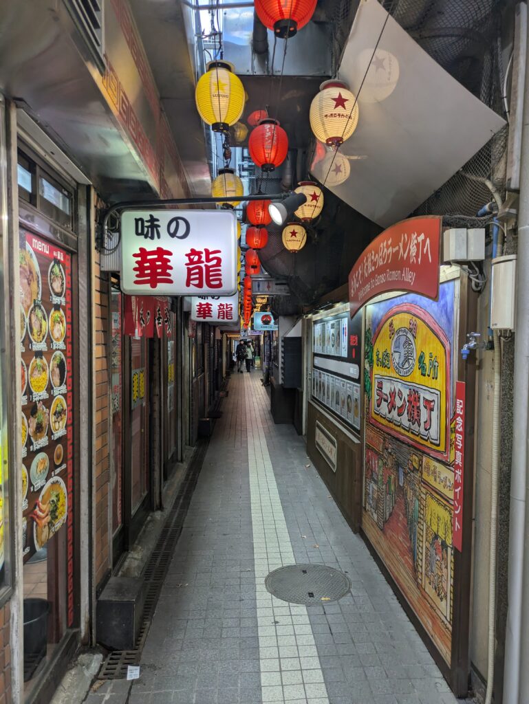 Dann lassen wir uns ein wenig durch die Stadt treiben und landen in Ganso Ramen Yokocho, einer kleinen Gasse voller Ramenrestaurants. Hier nehmen wir dann auch unser Mittagessen ein und können dem Koch bei der Zubereitung direkt auf die Finger schauen.