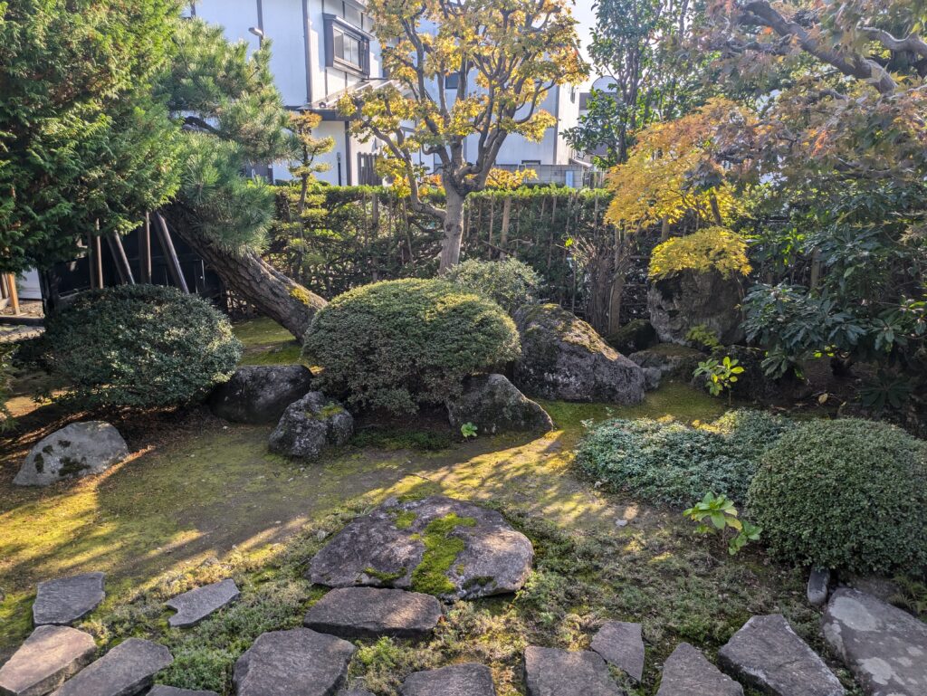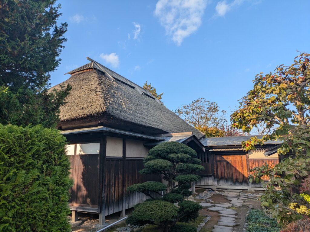 Nach dem Park schauen wir noch kurz in dem benachbarten Stadtviertel vorbei, in welchem noch einige alte Samurai-Häuser stehen. Die Häuser haben sich die Öffnungszeiten nach Tagen aufgeteilt, so ist gewährleistet, dass immer eins offen ist. Wir schauen uns demnach eines an und sind beeindruckt von der Anlage des kleinen Gartens und von der Rieddachkonstruktion.