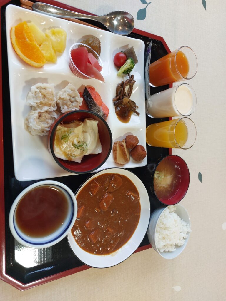 Heute startet der Tag um 07.00 Uhr mit einem ausgiebigen Frühstück. Das Buffet hat uns direkt umgehauen. Es gab neue Gerichte, die wir noch nicht hatten, wie beispielsweise ein Curry, Umeboshi oder Mangolassi. Wir konnten gar nicht alles probieren, sodass wir die westliche Ecke mit Crossaints, Pancackes, Joghurt usw. auslassen.
