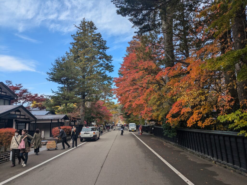 Wir steigen in Kakunodate aus und gehen bei schönem Wetter in den historischen Teil der Stadt. Im nördlichen Teil lebten früher die Samurai und im südlichen Teil die Kaufmänner. In einige der Häuser darf man teilweise eintreten und kann so einen Blick in die damalige Lebensweise erhaschen. Bei den Häusern der Samurai ist auch ein Klassen-Unterschied erkennbar. Am nördlichen Ende des Viertels gehen wir an den Fluss, welcher von einer, im Frühjahr sicher beeindruckenden, Kirschbaumallee gesäumt wird. Jetzt im Herbst sieht es hier etwas farbloser aus, sodass wir weiter durch die Stadt gehen. Im Händlerviertel können wir einen Blick in eine Schatzkammer werfen. In Japan sind dies etwas abseits stehende Gebäude ohne Fenster mit dicken Mauern und Türen, die so die Kostbarkeiten vor Feuer schützen sollen. In einer Soja- und Misobrauerei können wir eine Misosuppe und zwei verschiedene Soja-basierte Suppen probieren. Diese schmecken deutlich anders als die Supermarktware.