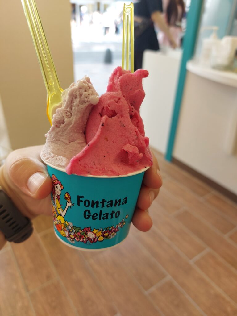 Beim Schlendern durch die Kokusaidori finden wir auch noch die Artikel des anderen hier stark vertretenen Handwerks, die Glasbläser Zunft. Außerdem gönnen wir uns ein Eis, als Sorten gibt es Drachenfrucht und Süßkartoffel, beides sehr lecker.