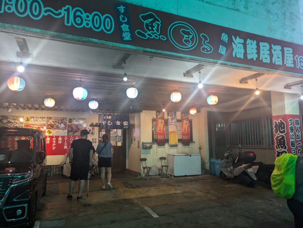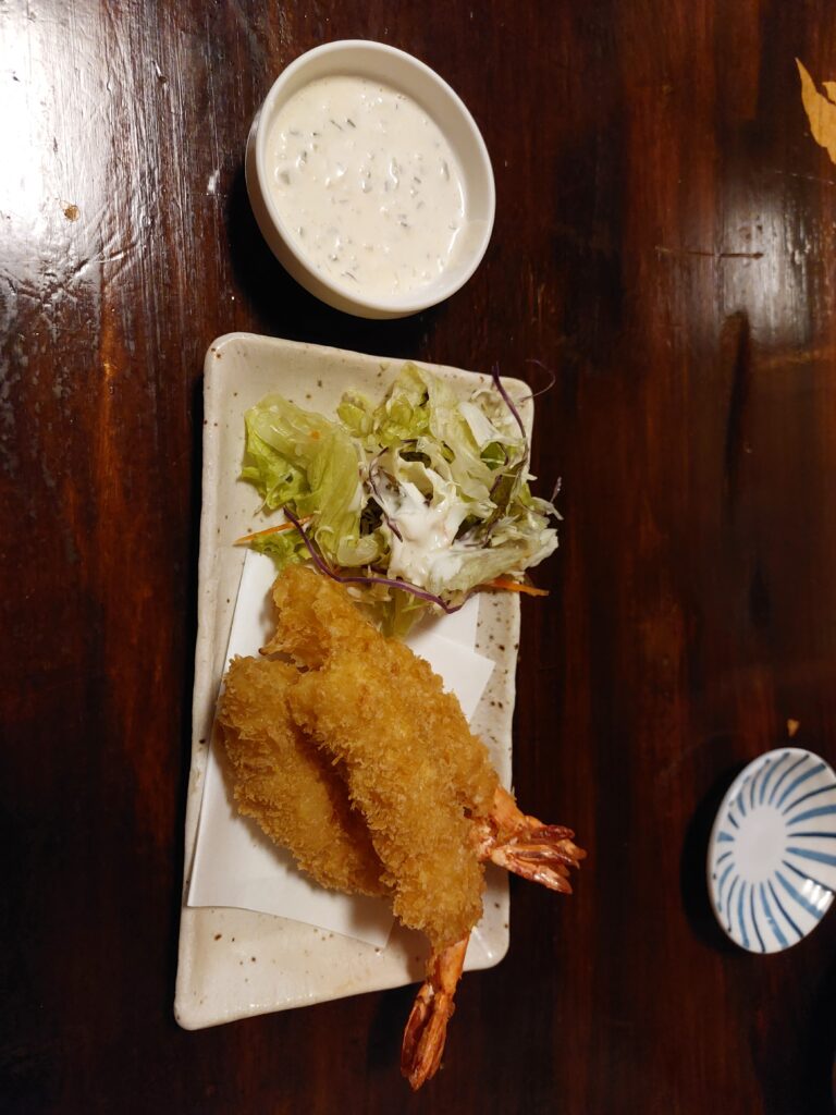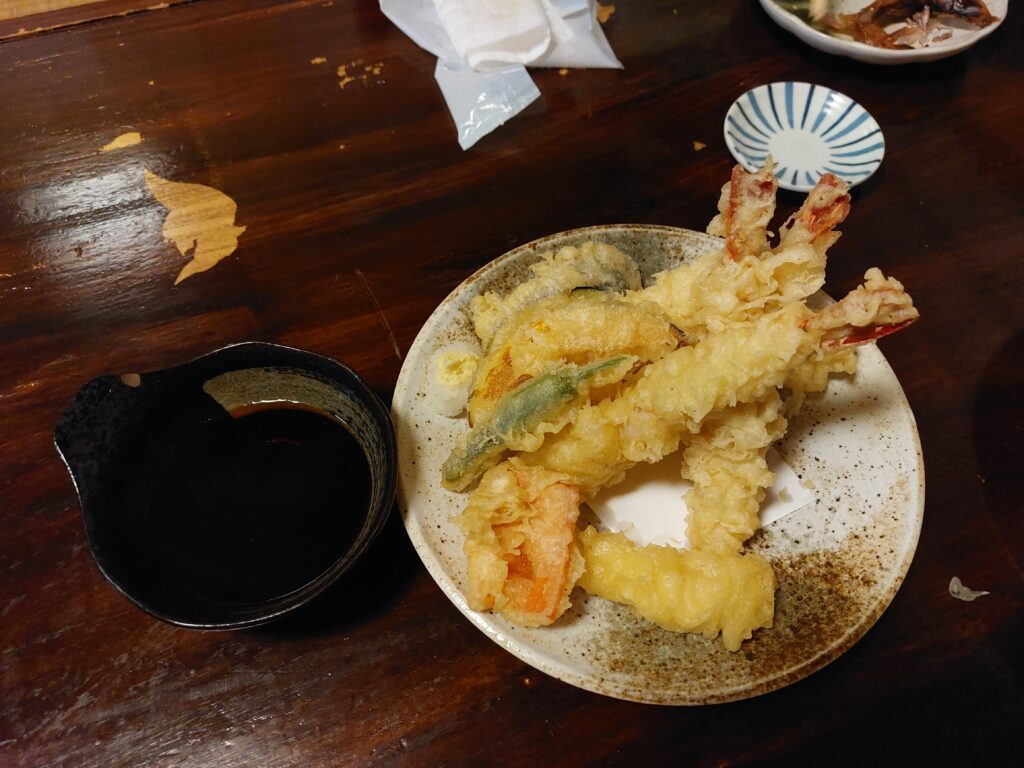 Die Fährfahrt war ruhig. Kaum Wellengang, dafür aber viel Regen, Zeit ein Nickerchen zu machen. Zurück in Naha checken wir im Hotel ein und suchen ein Lokal zum Abendessen. Heute soll es Tempura geben. Die Ebi fry Tempura war unser Favorit. Sowas hatten wir hier noch nicht bekommen.