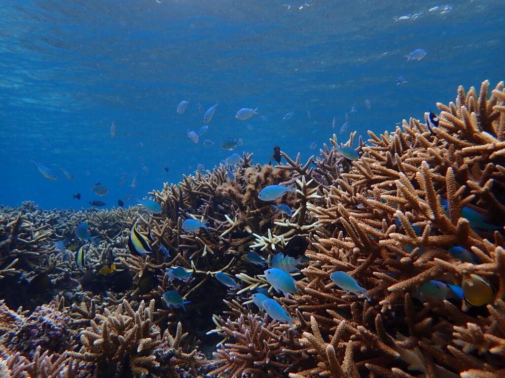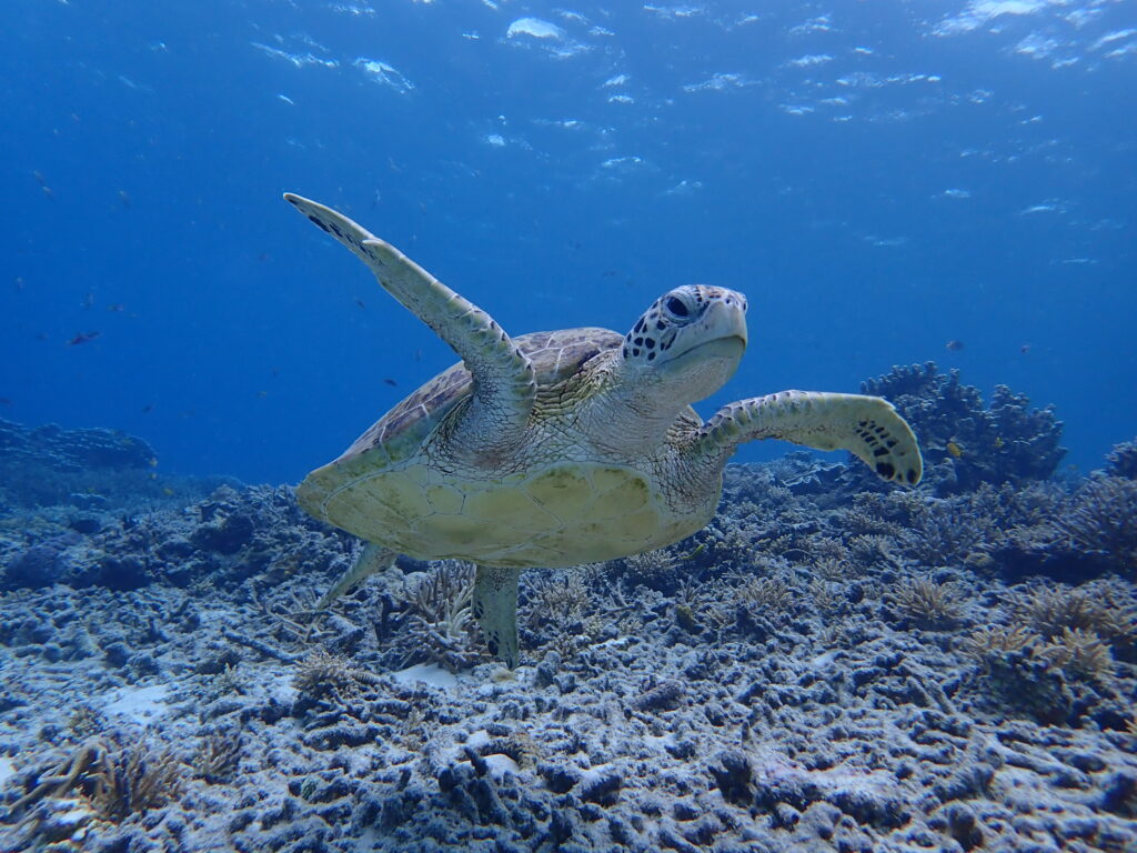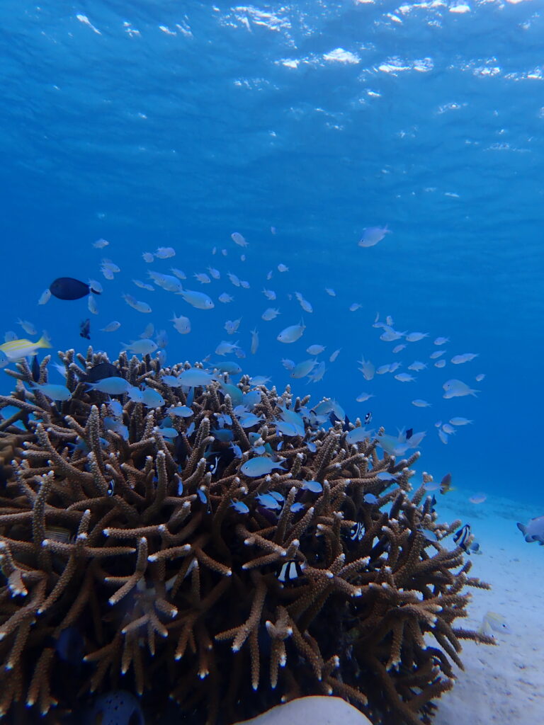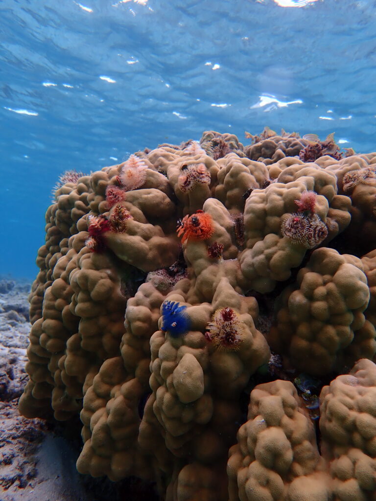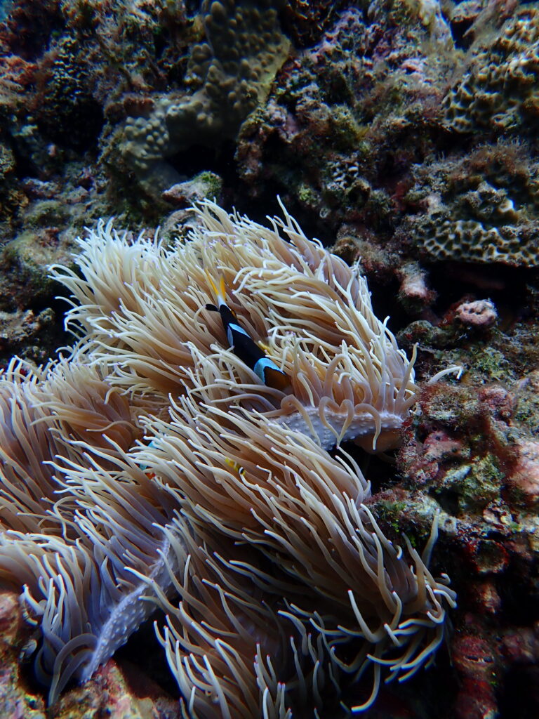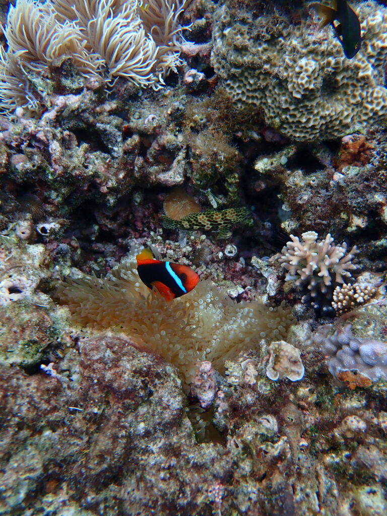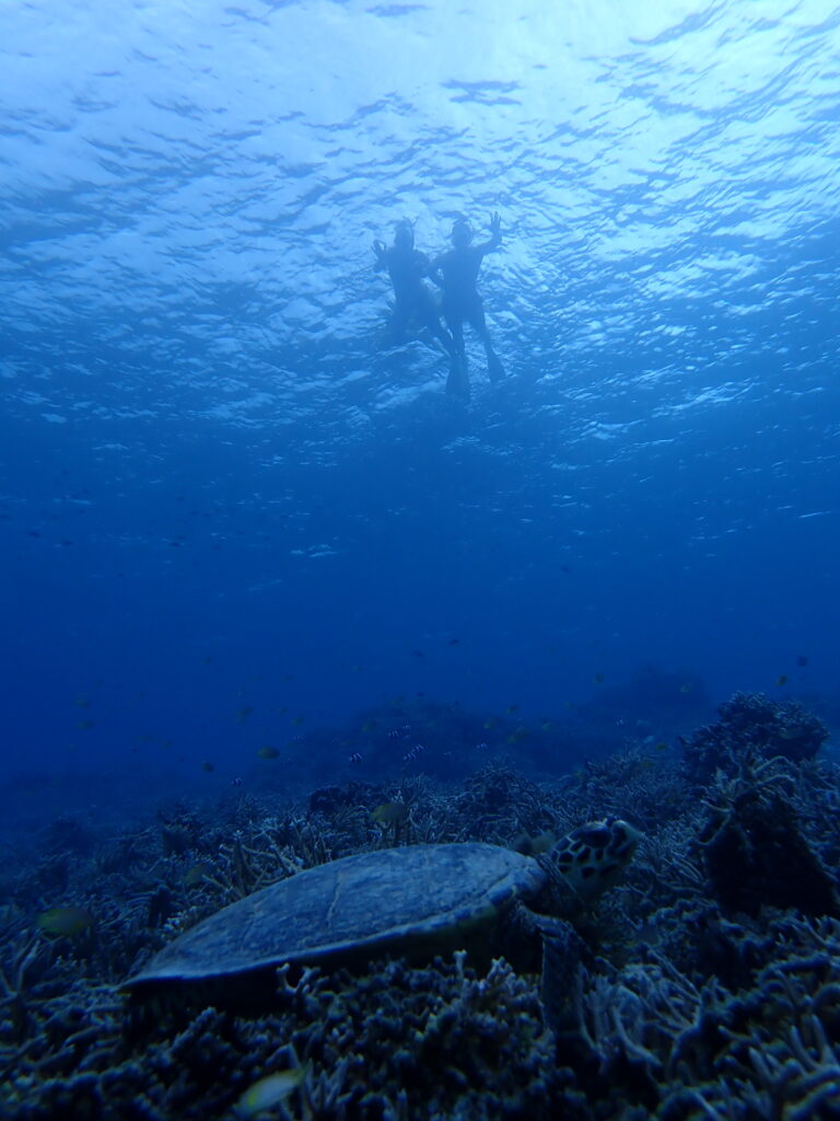 5 Minuten vor der Zeit werden wir von unserem Tourguide abgeholt und zum Treffpunkt gebracht. Wir können die ganze Ausrüstung testen: Flossen, Schwimmweste, Neoprenanzug und Taucherbrille. Es gab sogar welche mit Sehstärke und wir finden passende für uns. Anschließend geht es auf zum Ama-Strand. Es ist bewölkt, aber warm. Der Wind wird stärker, als gestern noch vorhergesagt, aber das hält uns nicht ab. Wir steigen auf die Bretter und fahren etwas auf das Meer hinaus, sowie an der Küste entlang. Die Landschaft ist malerisch. Das Wasser ist so klar, dass die Blautöne richtig herausstechen und die Inseln von einem kräftigen Grün überzogen sind. Das SUP fahren erfordert etwas mehr Balance, als wir es gewohnt sind, trotzdem ist keiner ins Wasser gefallen. Danach fuhren wir wieder an den Start zurück und wechselten auf die Schnorchelausrüstung. Eine Probe im Meer zeigt, das ist warm. Kein Vergleich zur Nord-/Ostsee oder dem Mittelmeer. Nur auf Sri Lanka war das Wasser noch wärmer. Wir verzichten auf den Neoprenanzug und los geht’s. Es eröffnet sich eine atemberaubende Unterwasserwelt und das direkt vor der Küste. Wir können unseren Augen kaum trauen. Tatsächlich, es gibt diese Fische in freie Wildbahn, die man sonst nur aus Fotos und Erzählungen kennt. Was eine Vielfalt auf engem Raum. Wir haben sogar Glück und können 2 Wasserschildkröten beobachten. Sie gleiten mit einer Leichtigkeit durchs Wasser-sehr elegant. Wir sind wirklich beeindruckt. Am Ende der Tour geht es mit dem Auto zurück zum Startpunkt. Wir hatten es uns zwar gedacht, sind aber dennoch erstaunt, man friert hier einfach nicht. Es ist kein Problem nass aus dem Wasser zu kommen und sich ohne abtrocknen ins Auto zu setzen. Die Einheimischen manchen das genauso. Am Startpunkt angekommen können wir noch duschen und uns umziehen.