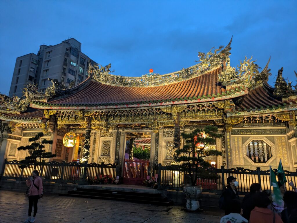 Dann geht es für uns zum Mengija Longshan Tempel, dem wichtigsten Tempel der Insel. Auf der Auskunftstafel wird noch darauf hingewiesen, dass die Verbündete USA 1945 den Tempel versehentlich dem Erdboden gleich gemacht hat und er im Anschluss wieder aufgebaut wurde.