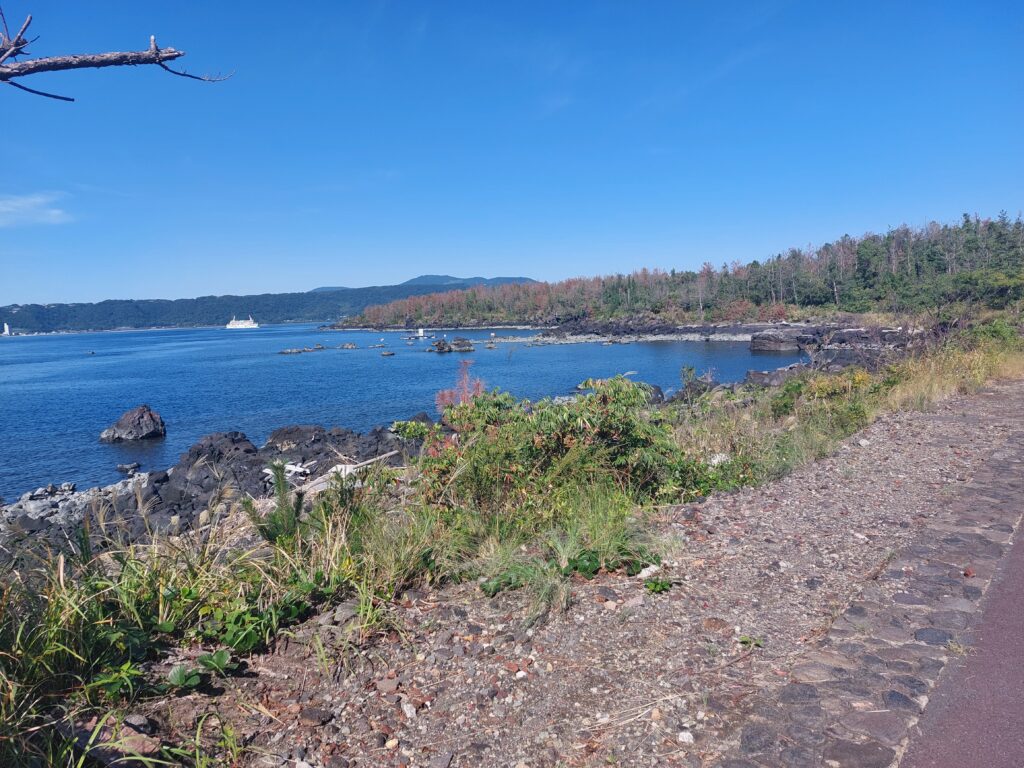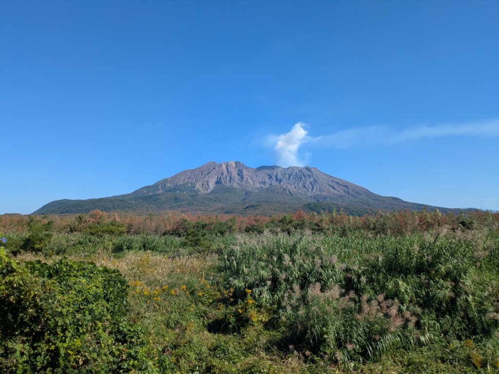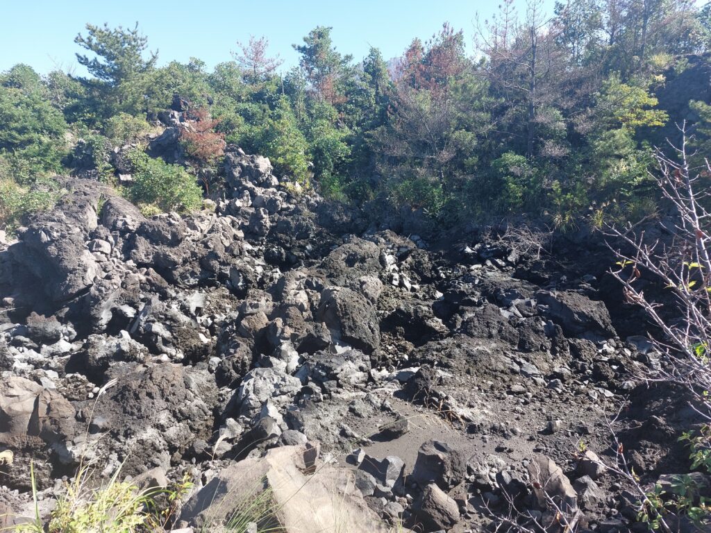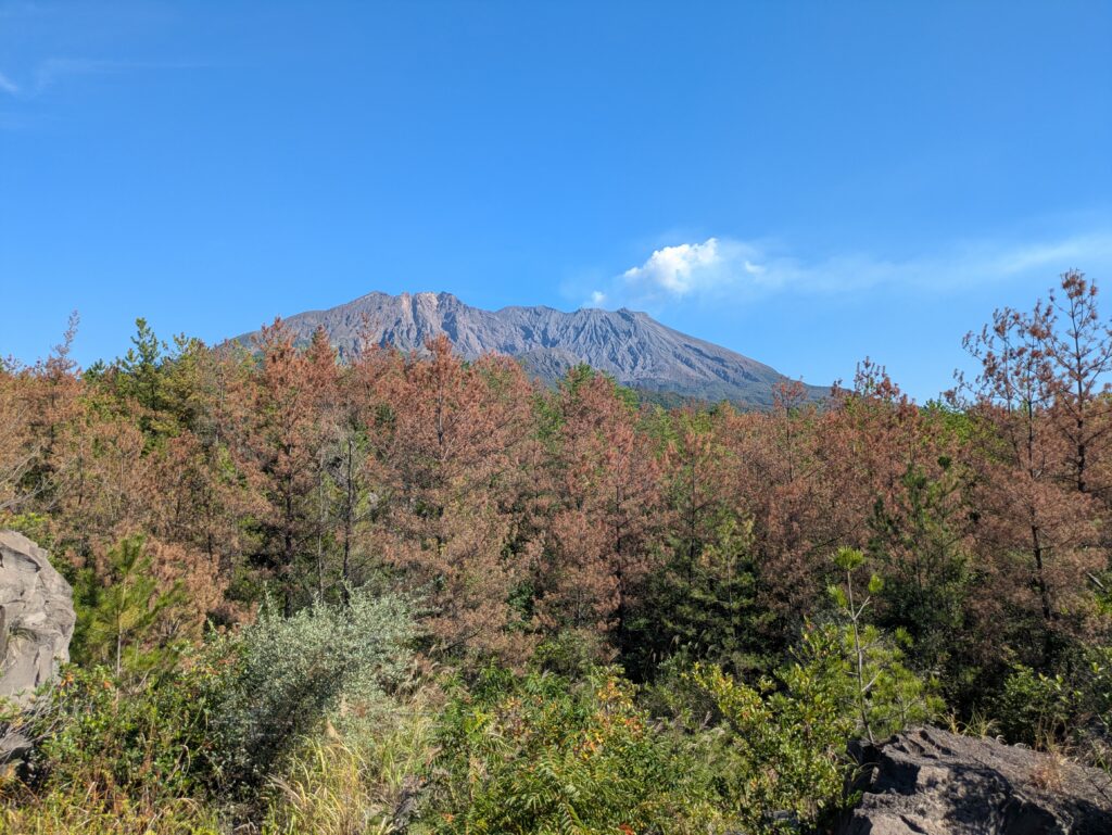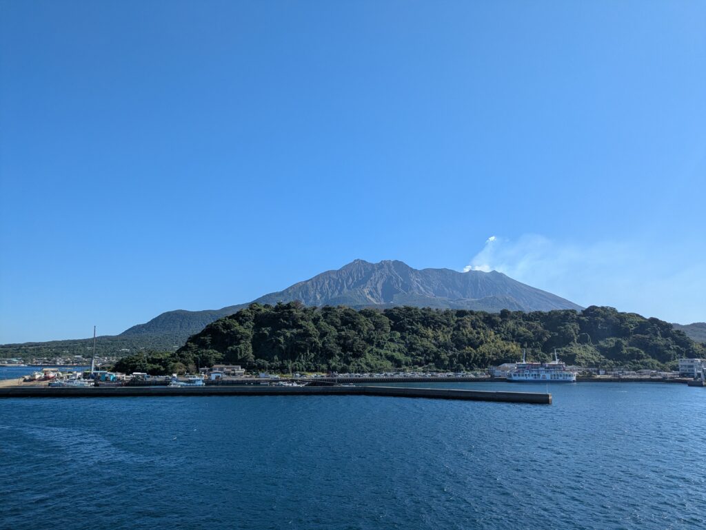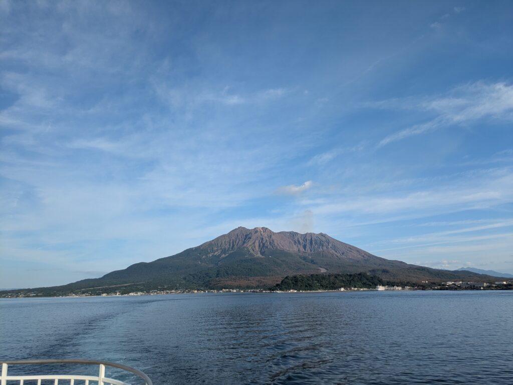 Die Fähren fahren im 15 Minuten Takt, bezahlt wird nur auf der Vulkanseite. Jetzt ist T-shirt und kurze Hose Wetter. Sakurajima ist der aktivste Vulkan Japans. Die letzte große Eruption fand erst 1914 statt, bei der die Insel mit dem Festland auf der Ostseite verbunden wurde. Die Vegetation nach einem Ausbruch braucht ca. 200 Jahre, bis große Bäume wieder an der Stelle wachsen. Wir machten einen Spaziergang entlang des Yogan Nagisa Trails. Er führte uns durch die etwa 100 Jahre alte Vegetation. Alles vorhergehende wurde bei der Taisho Eruption im Jahr 1914 meterhoch von Lava und Asche bedeckt. Außerdem sahen wir noch Gesteinsbrocken von damals. Schon komisch, wie sich darauf wieder Leben bilden kann. Vor allem auch die Bäume mit ihren Wurzeln nicht umfallen. Es gibt dort ja keine tiefe Erde.