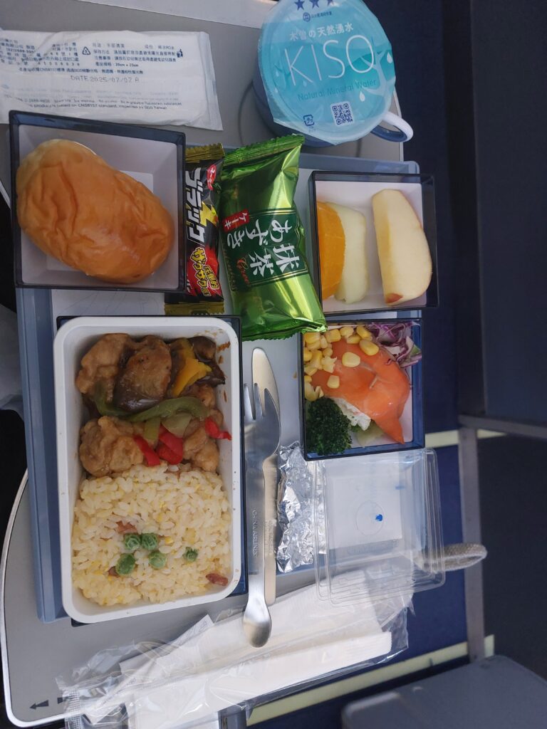 Am Flughafen angekommen, klappte es problemlos. Wir nahmen den Busshuttle zum internationalen Terminal und checkten ein. Das Personal am Schalter wollte dann tatsächlich auch unsere Flugtickets für die Ausreise aus Taiwan sehen. Kein Problem, wir haben ja einen Rückflug nach Deutschland. Dann bekamen wir noch 2 Plätze mit mehr Beinfreiheit. Man hatte mit uns großen Personen wohl ein bisschen Mitleid. Beim online Check in hatten wir noch einen Mittelplatz zugelost bekommen.