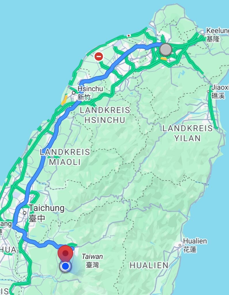Mit etwa 25 Minuten Verspätung geht unser Flug CI111 dann los, in der Luft wird aber eine halbe Stunde eingeholt und so können wir nach der Einreise auch schon bald unseren Rucksack wieder entgegennehmen. Um 13:17 Uhr geht die Metro nach Taipeh und um 14:15 Uhr sitzen wir dann schon im Bus Terminal. Wir hatten den Weg zwar schon ausgekundschaftet, aber tatsächlich sind wir einen anderen Weg gegangen. Unterirdisch gibt es hier viele Wege.