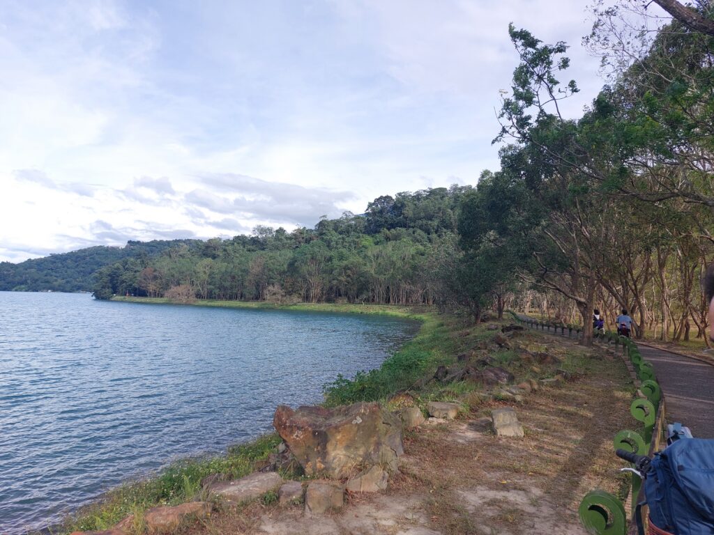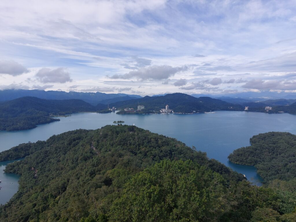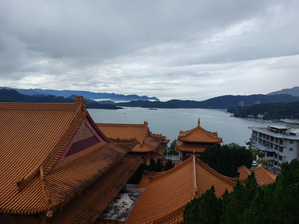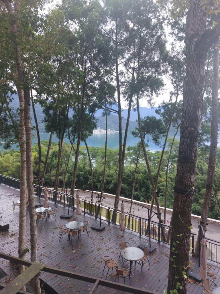 Um 07:10 Uhr starten wir mit einem für uns neuen Ausblick in den Tag. Von unserem Zimmer aus kann man den See gut überblicken. Danach geht es für uns zum Frühstück. Es gibt eine spannende Auswahl an taiwanesischen und südostasiatischen Speisen. Das Frühstück nehmen wir draußen auf der Terrasse in kurzen Klamotten ein. Das fühlt sich schon sehr nach Urlaub an.