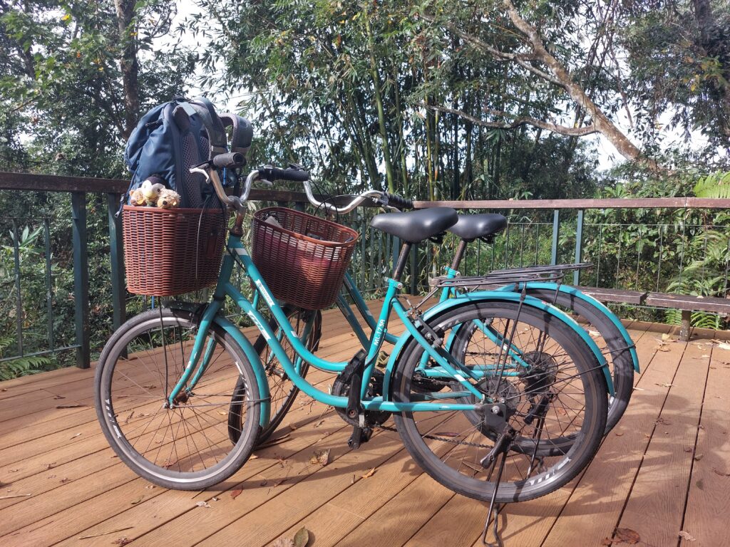 Nachdem wir uns fertig gemacht haben, brechen wir mit geliehenen Fahrrädern vom Hotel auf, zur Umrundung des Sees im Uhrzeigersinn.