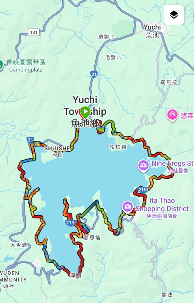 Ab jetzt geht es immer am Wasser entlang nach Shuishe. Dort waren wir gestern mit dem Bus angekommen. Heute bei Tageslicht sieht es nochmal ganz anders aus. Wir betreten ein Restaurant und essen uns erstmal satt nach der Fahrradtour.