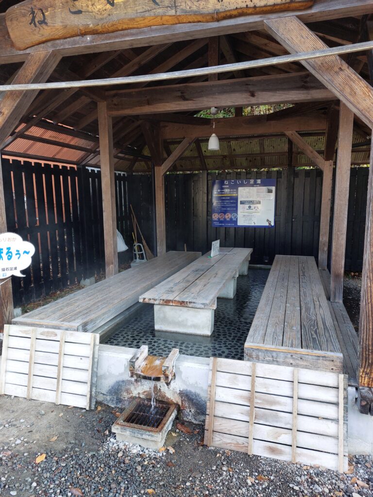 Da der vom Hotel organisierte Shuttle Bus zum Bahnhof Morioka erst um 09.45 Uhr fährt, bleibt uns noch etwas Zeit für einen morgendlichen Spaziergang. Wir nehmen geschickter Weise noch drei kleine Handtücher mit um die gestern Abend entdeckten heißen Quellen am Straßenrand zu testen. Insgesamt führt uns der Spaziergang an drei Quellen vorbei, eine direkt gegenüber von unserem Hotel in der Morgensonne, eine morgens doch stark beschattete und schließlich eine warme Handquelle. Auf dem Weg zum Stausee wird die Handquelle als erstes getestet. Nach einer kurzen Strecke am Seeufer entlang, bei der wir einen Seeadler in etwas Entfernung beobachten können, geht es zurück zum Hotel. Hier verbringen wir dann noch ein paar Minuten barfuß und mit hochgekrempelten Hosenbeinen in der Quelle.
