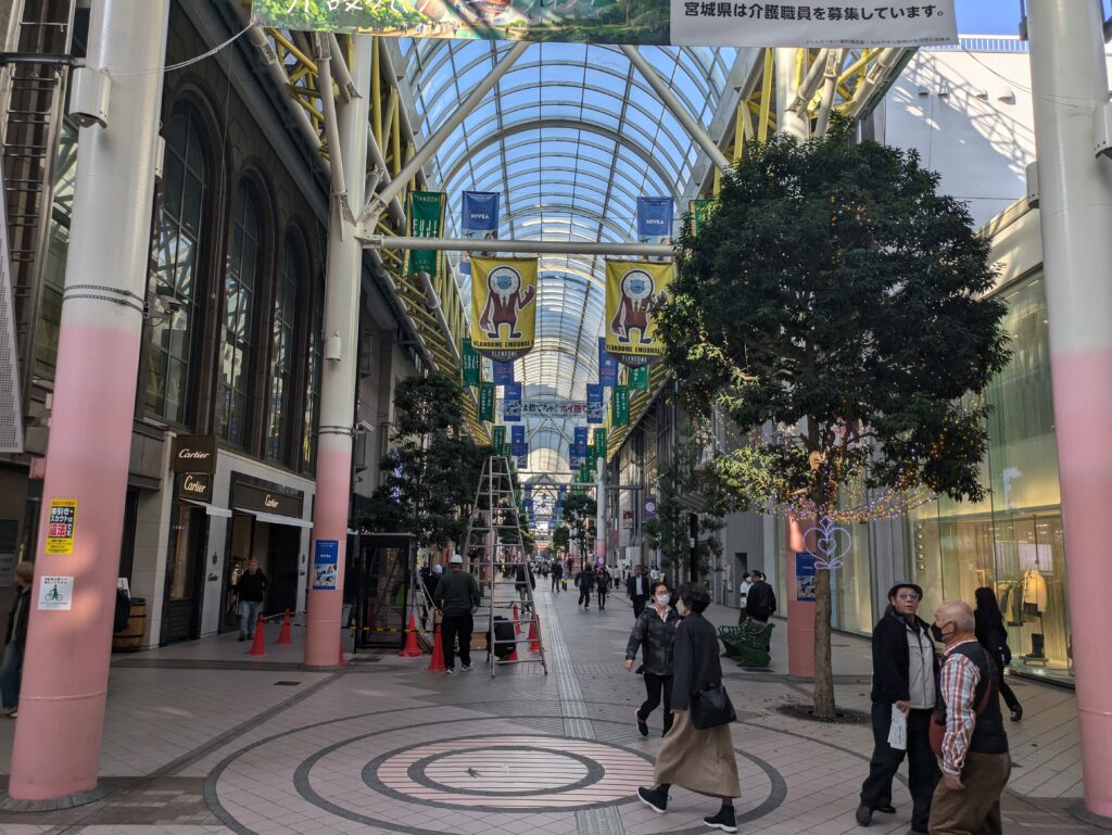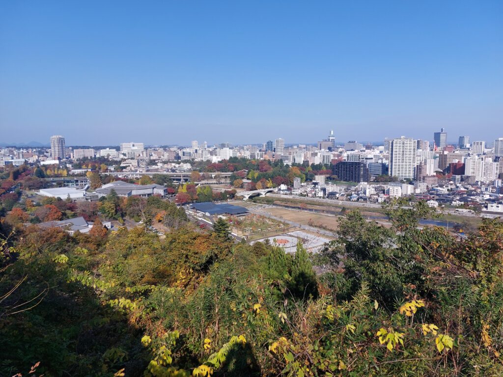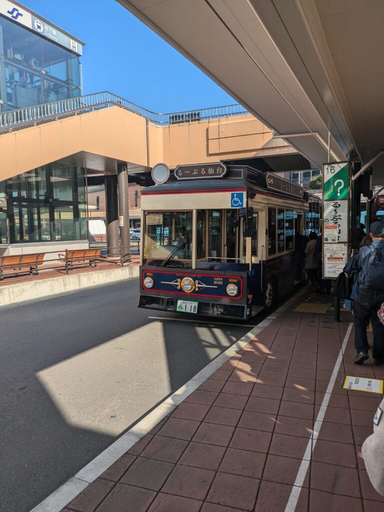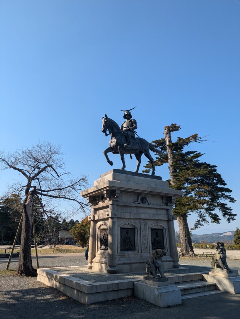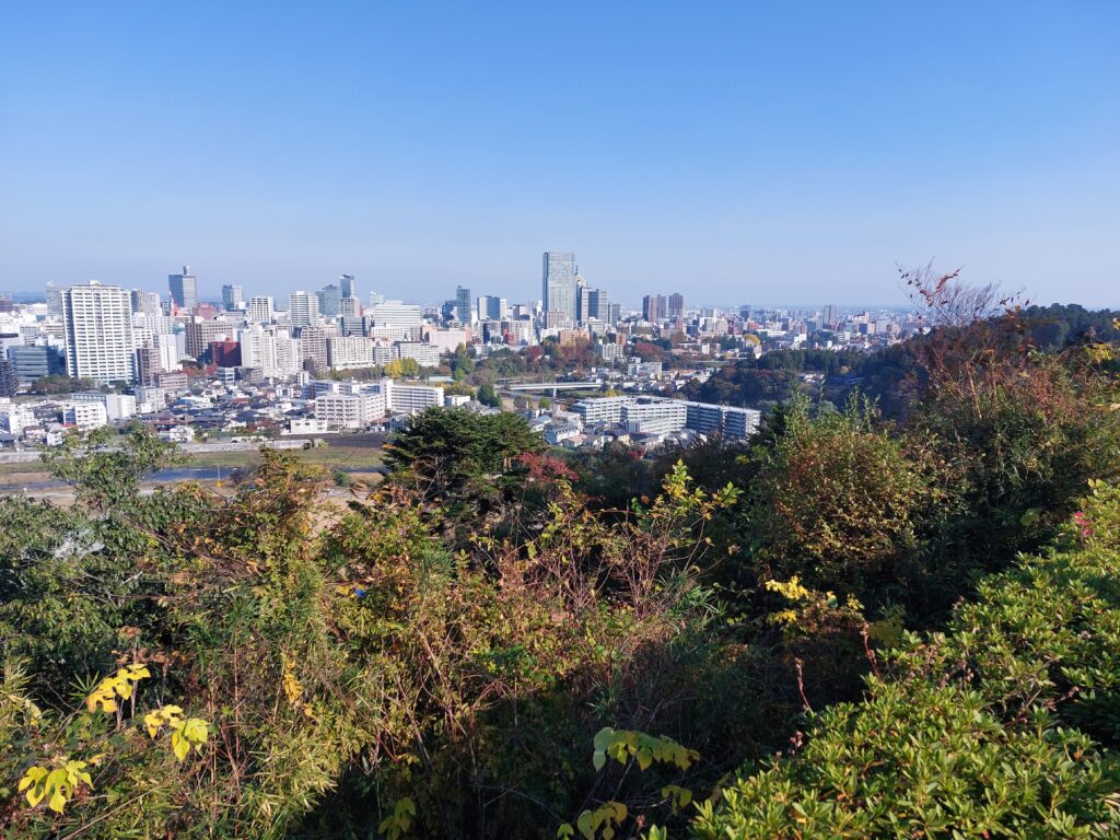 Der Bus bringt uns zum Bahnhof Morioka wo wir um 10.51 Uhr in den Shinkansen einsteigen. Dieser kommt planmäßig um 11.31 Uhr in Sendai an. Heute ohne Regen, sondern bei strahlendem Sonnenschein erkunden wir die Stadt, zuerst geht es mit dem Touristenbus Loople zur Aoba Jo, den Ruinen der Burg von Date Matsume hoch über der Stadt.