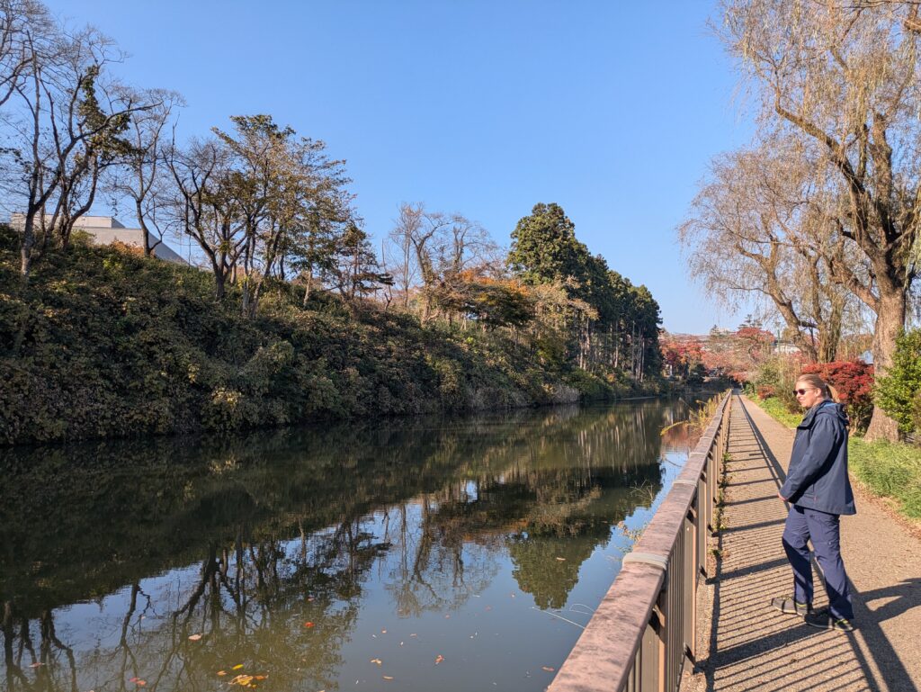 Wir steigen in Kakunodate aus und gehen bei schönem Wetter in den historischen Teil der Stadt. Im nördlichen Teil lebten früher die Samurai und im südlichen Teil die Kaufmänner. In einige der Häuser darf man teilweise eintreten und kann so einen Blick in die damalige Lebensweise erhaschen. Bei den Häusern der Samurai ist auch ein Klassen-Unterschied erkennbar. Am nördlichen Ende des Viertels gehen wir an den Fluss, welcher von einer, im Frühjahr sicher beeindruckenden, Kirschbaumallee gesäumt wird. Jetzt im Herbst sieht es hier etwas farbloser aus, sodass wir weiter durch die Stadt gehen. Im Händlerviertel können wir einen Blick in eine Schatzkammer werfen. In Japan sind dies etwas abseits stehende Gebäude ohne Fenster mit dicken Mauern und Türen, die so die Kostbarkeiten vor Feuer schützen sollen. In einer Soja- und Misobrauerei können wir eine Misosuppe und zwei verschiedene Soja-basierte Suppen probieren. Diese schmecken deutlich anders als die Supermarktware.