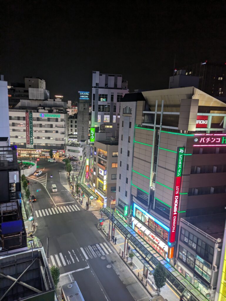 Nach einer kurzen Weiterfahrt mit der JK-Line zum Bahnhof Kamata checken wir in unserem Hotel ein. Vom 10. Stock hat man einen guten Blick über das Viertel.